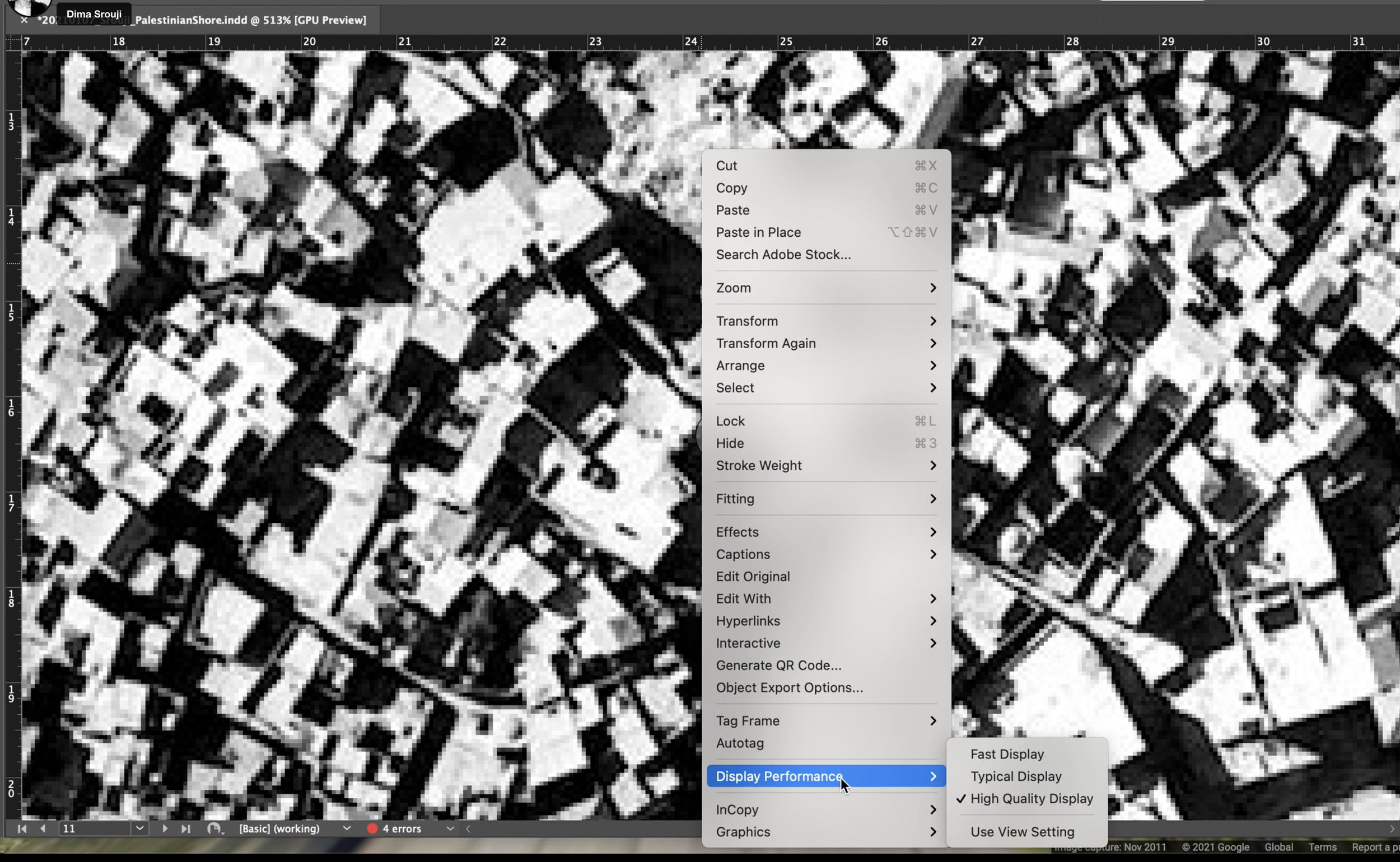 On the search of what is no longer there. Looking for traces of the displaced and erased. Pixelated archival images of Jaffa superimposed onto Google satellite imagery of the city today reveal the total erasure of an entire Palestinian neighbourhood during the Nakba. This film hallucinates over that absence, and then relocates to Street View looking for answers.